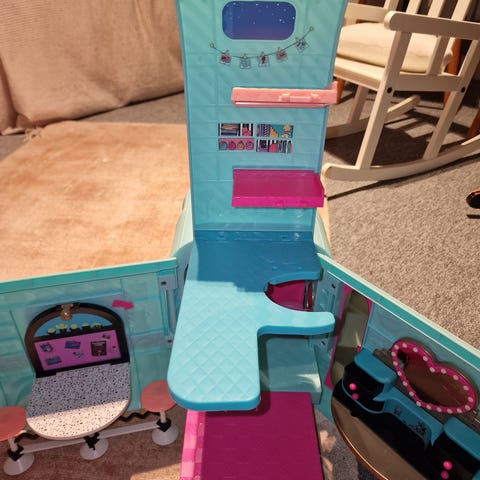 L.O.L. Surprise lekfordon i blå och rosa färger. Fordonet är utformat för lek och har flera detaljer och funktioner för barn.