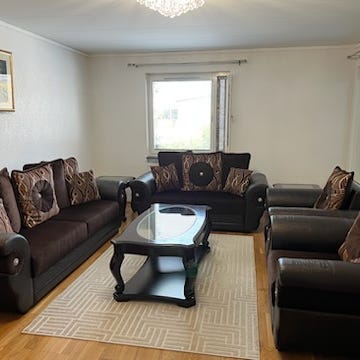Soffgrupp + soffbord + sidobord