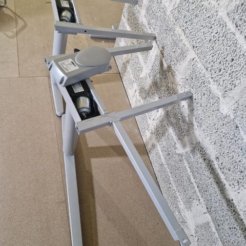 Underredet är i bra begagnat skick. Behöver bara en bordsskiva för att bli ett komplett höj-/sänkbart skrivbord.