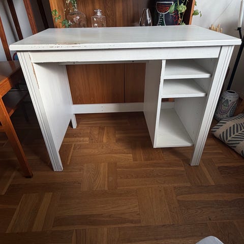 Vitt skrivbord, Alex, från IKEA. Några små märken på skrivbordsskivan finns (se bild 2 och 3).