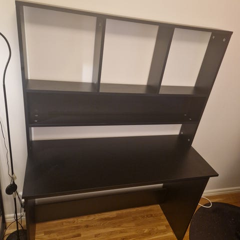 Ett skrivbord perfekt för en student, för att få in mycket på liten yta.