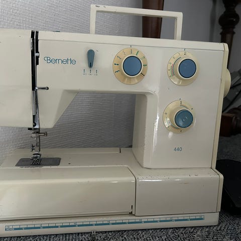 Kraftfull symaskin från Hugin i retrostilen vi alla minns och saknar. Sladdar, bord, manual och etui med tillhörande verktyg m.m. medföljer. Utöver charmig patina har bordet fått sig en stöt i ena kanten (se bild). Maskinen funkar fint, passa på innan jag ångrar mig!