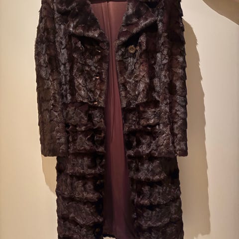 Minkpäls, färg brun, vintage. Uppskattad storlek 40/42. Är handsydd på insidan av kappan på ett ställe, Se bild. Pris 1000kr