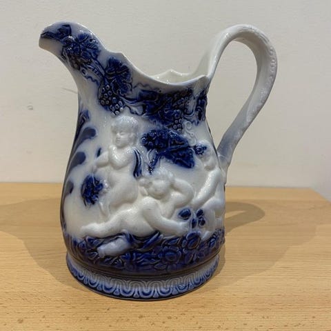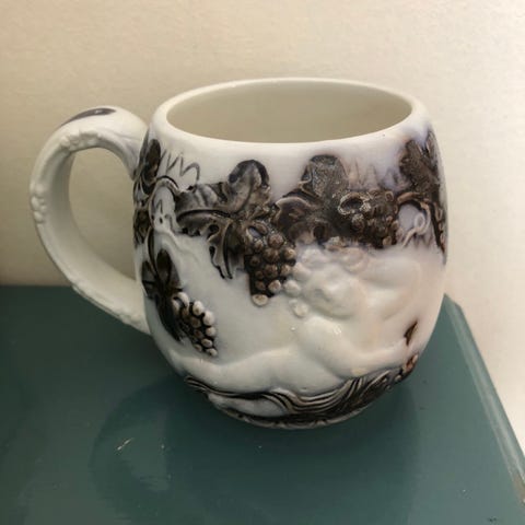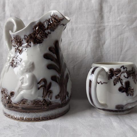 Svensktillverkade Mullbär kanna och Mullbär mugg, set i keramik, från sekelskiftet.