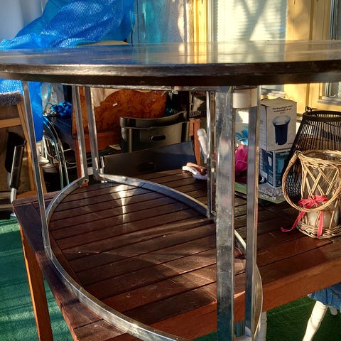 Stort och funktionellt soffbord. Det är synligt använt och priset är satt därefter. Andra bilden är den värsta kosmetiska skadan. I övrigt är det helt och rent. Märke okänt.