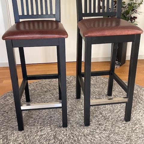 Svarta barstolar i böjträ 70-tal 200 för paret.
