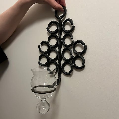 Säljer en fin väggljusstake i svart metall med spiralform.