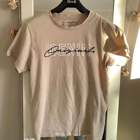 Jack & Jones loose-fit skjorta i beige färg, storlek S för herrar. Skjortan har ett unikt tryck med japanska motiv, och är i mjukt skönt material.