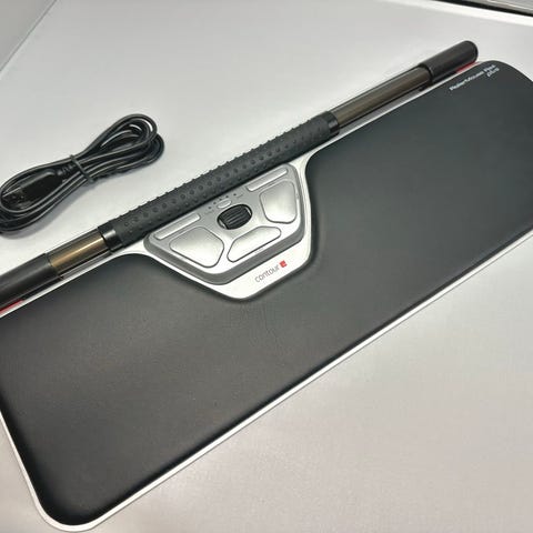 RollerMouse Red Plus är en ergonomisk mus i svart färg. Produkten är utformad för att minska belastning på handleder och armar vid datoranvändning. Den har en rullningsfunktion och flera knappar för olika styrfunktioner.