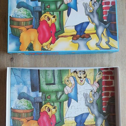 Varje pussel har en separat pappersbild i lådan.