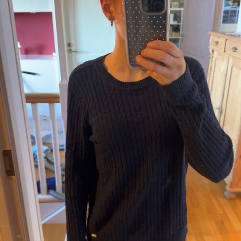 Det är en lös tråd i tröjan som syns diskret, se bild