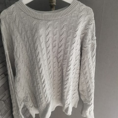 ”Denna rundhalsade tröja i mjuk kashmir- och ullblandning har en ledig silhuett och är ett måste året runt. Tröjan har vida ärmar och är slätstickad med hög ribbstickning i ärm och nederkant samt sprund i den ribbstickade nederkanten med fiskbensmönstrade detaljer. Plagget har en relaxed fit. För en mer figurnära passform rekommenderar vi att du väljer en mindre storlek”