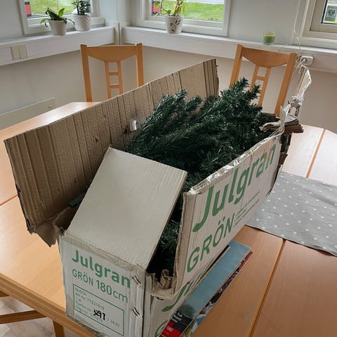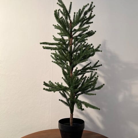 IKEA julgran i rotting. Höjd: 1,30 m Bredd: 60 cm. En ljusslinga kan monteras under för en trevlig stämning.
