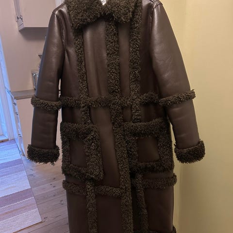 Svart kappa med detaljer i teddyfoder. Kappan har en rak passform, långa ärmar och knäppning framtill. Den är i fint skick. Rökfritt hem. Skickar paket som spårbart.