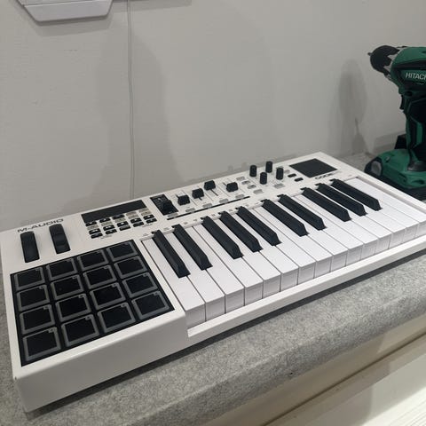 MicroLab Smart 25 Keyboard Controller med 25 tangenter i vitt. En kompakt och bärbar MIDI-kontroller för musikskapande och produktion.