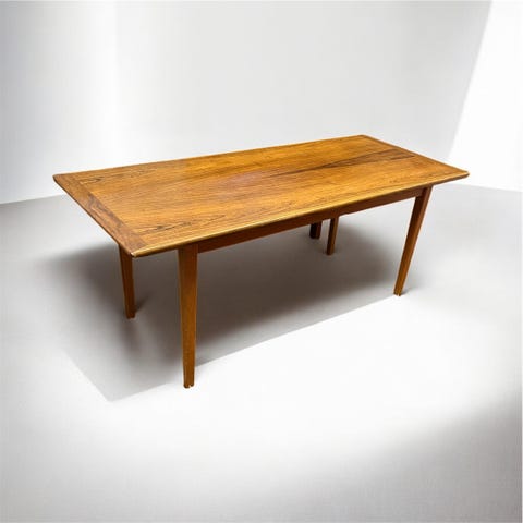 Bord från 1940-talet med vitmålad bordsskiva, träfärgad kant och svarta ben.