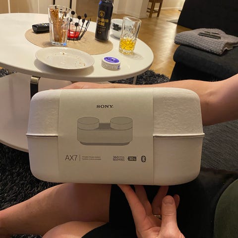 Hejsan säljer en sony ht-ax7 bärbart hemmabiosystem helt nytt enbart testad i kanske 2 timmar. Man kan ta av dom två plattorna så lägger man dom bakom sig för att få surround känslan. Perfekt julklapp. Kartongen finns kvar.