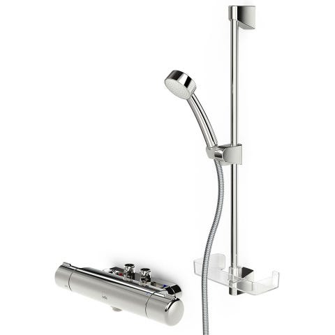 Oras blandare för badrum i krom. Inkluderar termostatblandare, handdusch med slang och tillbehör. Passar för installation i badrum för vattenreglering och duschfunktion. Även köksblandare samt kran för badrums handfat. 3 felfria produkter från 2022 i perfekt skick!