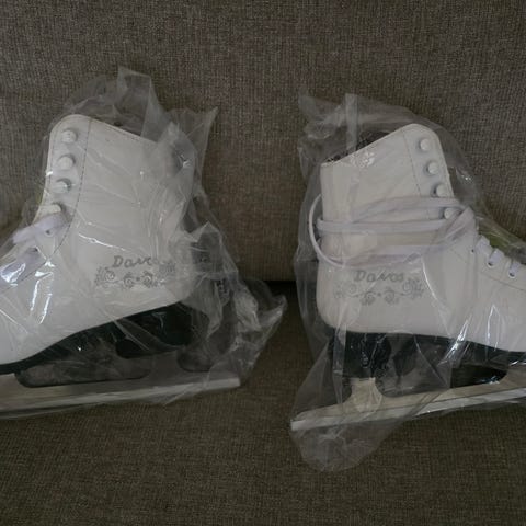 J Glacier Skate konståkningsskridskor för barn i storlek 34. Skridskorna är vita och har en överdel i syntetmaterial med foder av polyester. Passar för konståkning och har snörning för justerbar passform.