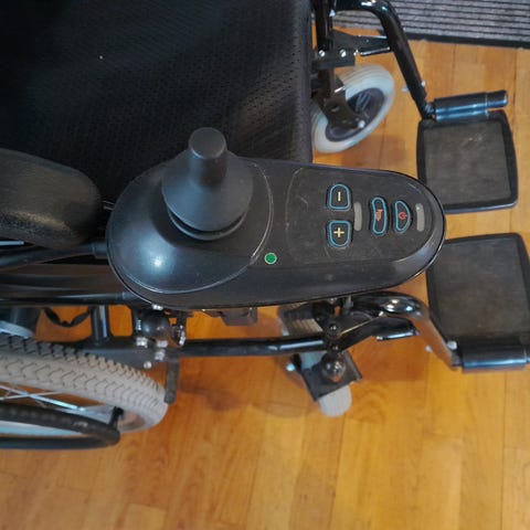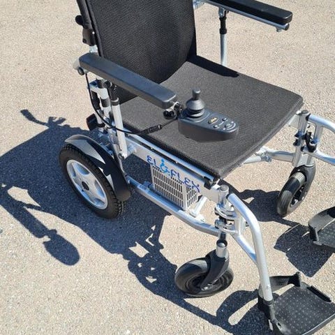 Joy Rider elrullstol i lättviktsmodell med svart ram och svart sits. Utrustad med joystickkontroll för enkel manövrering. Rullstolen har armstöd och fotstöd, samt nätmaterial på ryggstöd och sits för ventilation. Passar användare som behöver elektrisk rullstol för inomhus- och utomhusbruk.