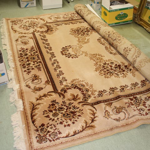 Tät gångmatta, även kallad gallerimatta, maskinvävd (Wiltonmatta).