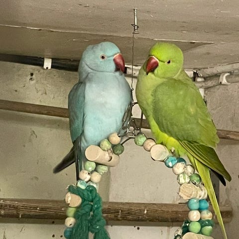 2 stycken fina friska hanar säljes i par för dom är vana att vara med varandra. Väldigt roliga och eleganta papegojor.