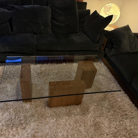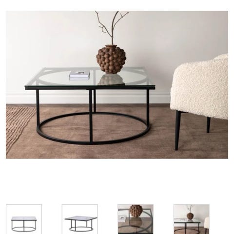 Smakfullt och elegant soffbord med en bordsskiva i klarglas och ett dekorativt underrede i mässing. Mässing är en het inredningstrend som passar de flesta hem och inredningsstilar.