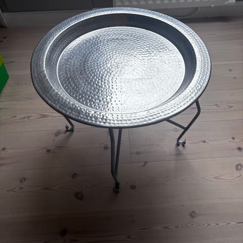50cm högt, brickan diam 50cm, diam inkl stativ 52