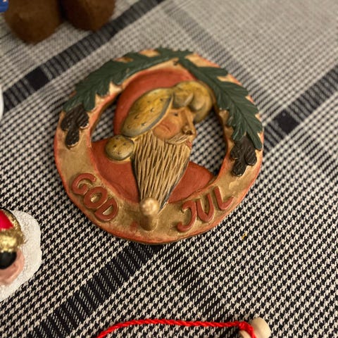 Gammal snögubbe från 30-talet. Hämtas på plats då den inte går att skicka. 35 cm hög.