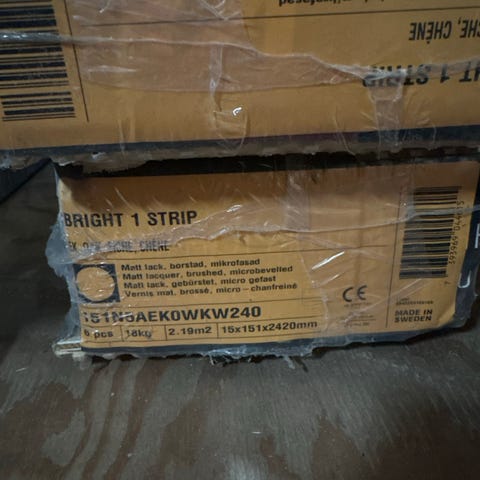 16,9 kvm dvs 35 plankor varav 14 kvm är i nyskick helt utan märken. Övriga plankor kan ha något litet obetydligt märke.
