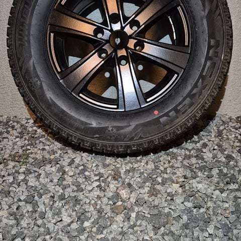 Säljer en helt ny uppsättning med dubbdäck på aluminiumfälgar till husbil.