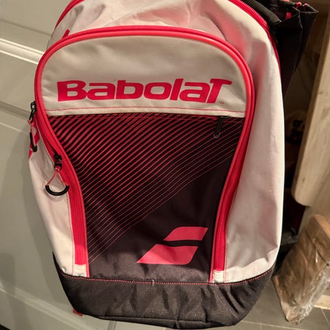 Babolat Jet All Court tennisskor i storlek 38 för dam. Skorna har en svart och vit färg med rosa snören. De är designade för att användas på olika typer av tennisbanor och har en slitstark sula för bra grepp.