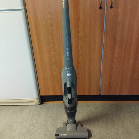 Electrolux Ergorapido 2-i-1 dammsugare i röd färg. Uppladdningsbar med sladdlös design för enkel användning. Utrustad med roterande borste för effektiv rengöring av hårda golv och mattor. Lätt och smidig modell lämpad för snabb städning.