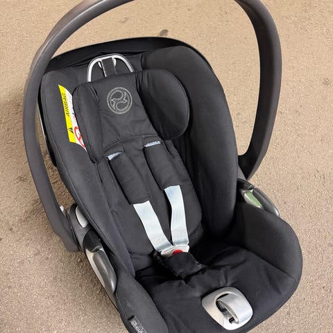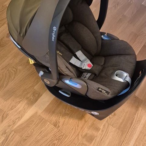 CYBEX Cloud T I-Size babyskydd med Isofix. Säljer även tillhörande adapter som passar barnvagn från Bugaboo och Maxi Cozi, samt en bilspegel.