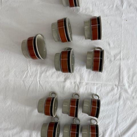 Fina Höganäs koppar med fat serie Party . Härliga att dricka ur med sin rundade kant håller värmen bra. I nästan nyskick. Hämtas I Högbrunn Nyköping