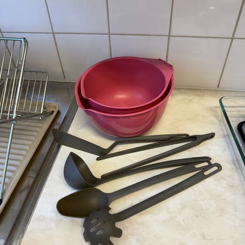 Skölj salladen lägg i slungan snurra tills allt vatten är borta från salladen.