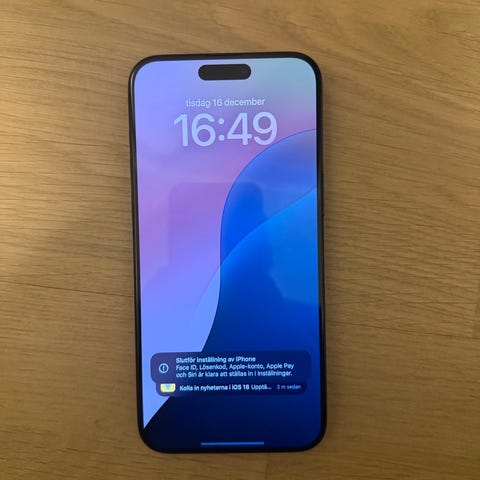 Apple iPhone 15 Pro Max smartphone med 256 GB lagringskapacitet. Olåst. Färgen är Black Titanium. 86 % batterikapacitet och nyinköpt på Fix My Phone i Nacka för 10 dgr sedan. Nytt skärmskydd i glas och laddkabel samt kartong. Några tunna smårepor som inte syns direkt och kvitto finns.