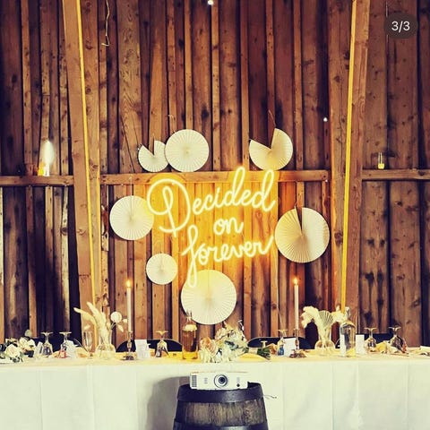 Finns även vita stolsöverdrag lila band att knyta runt stolarna.