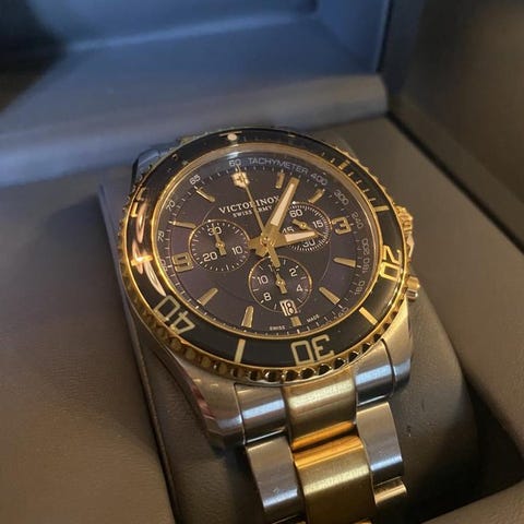 VICTORINOX SWISS ARMY, Maverick GS Large, armbandsur, 2016, quartzverk, guld/stål, safirglas, datum, krona med monogram, halvstel integrerad länk med viklås i original, ref nr. 160406355, serie nr. 249079, diam ca 42 mm,