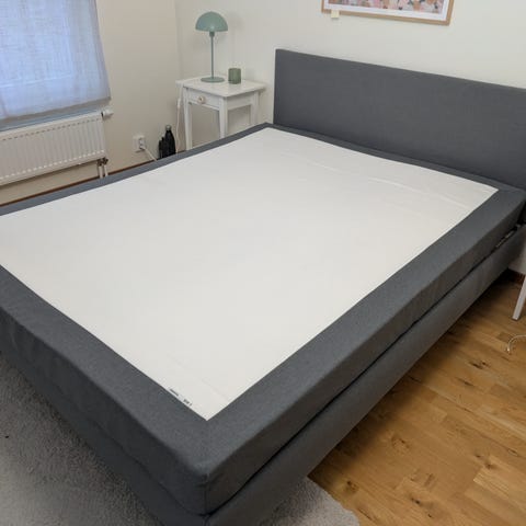 Säljer en Ikea kontinental säng i fint använt skick. Två fräscha bäddmadrasser ingår. Haft madrass skydd på så fräscha och fina. Mellan madrassen är blå. Inte beige som på bild. 140*200cm