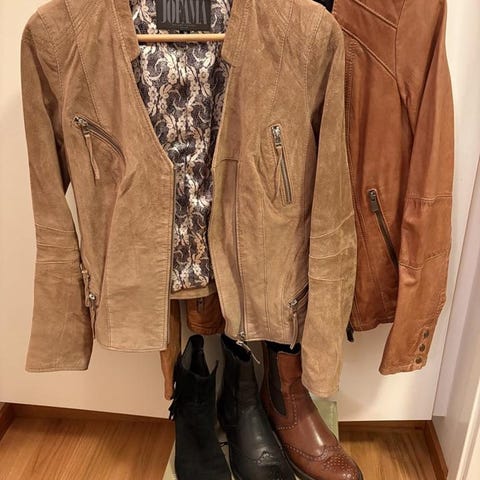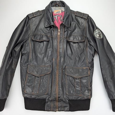 Jackan är i ett fint och välvårdat begagnat vintageskick. Lädret är mjukt och har en fin, naturlig patina från användning, men är utan hål eller fläckar.