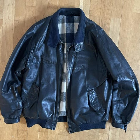 Säljer en otroligt cool och unik vintage skinnjacka från det skandinaviska 90-talsmärket "Violent Dreaming". En äkta bomberjacka i 100% läder med en fantastisk, unik karaktär.