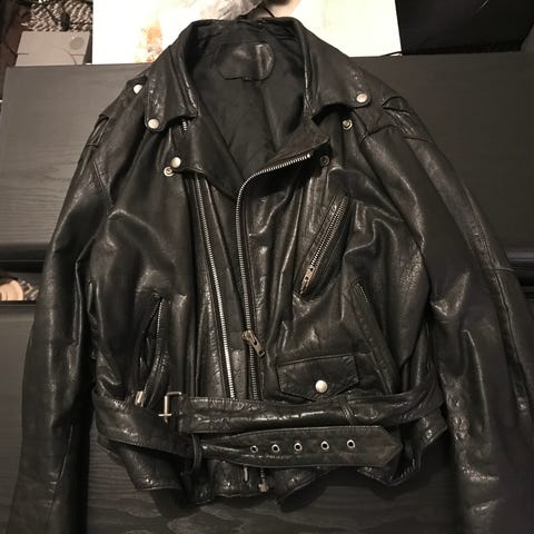 Jackan är i ett mycket fint och välvårdat vintage-skick. Lädrets slitna look är en del av originaldesignen. Muddarna är i fint skick och dragkedjan fungerar perfekt. Den slitna patchen på armen är en del av den autentiska charmen.
