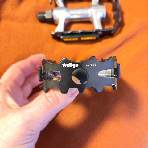 Pedalerna har en robust konstruktion med piggar för bättre grepp.