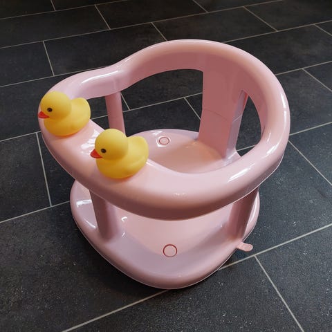 - Stödet har ett lager av mjukt material, som värms snabbt till barnets kroppstemperatur och badvatten