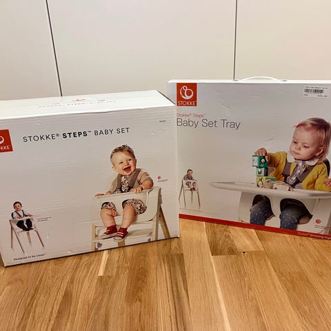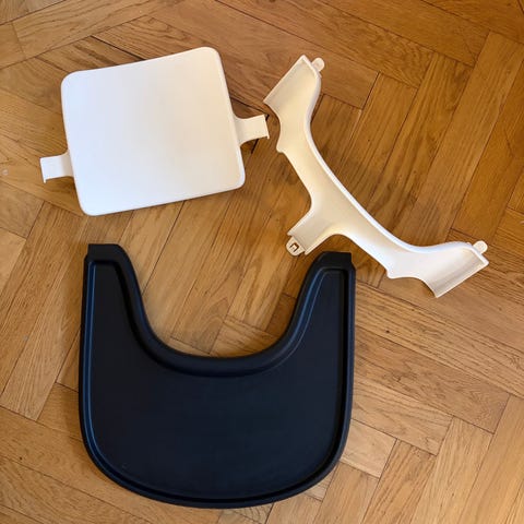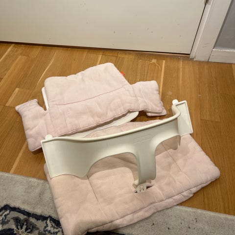 Ryggstöd till stokke babyset. Sparsamt använd. Fin turkos/blå färg.