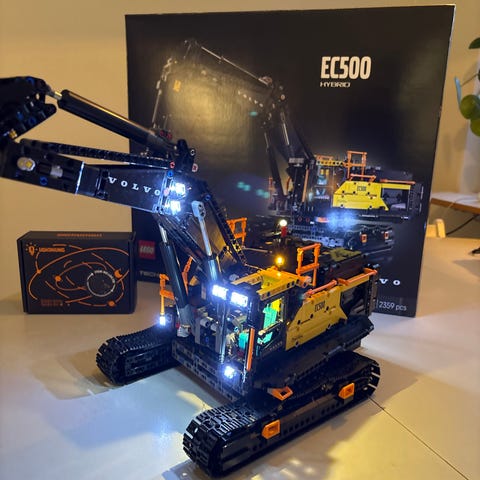En av LEGO Technics bästa modeller någonsin. Full funktionalitet för körning och kontroll av skopan. Byggd en gång och sedan nedmonterad i originalförpackning.