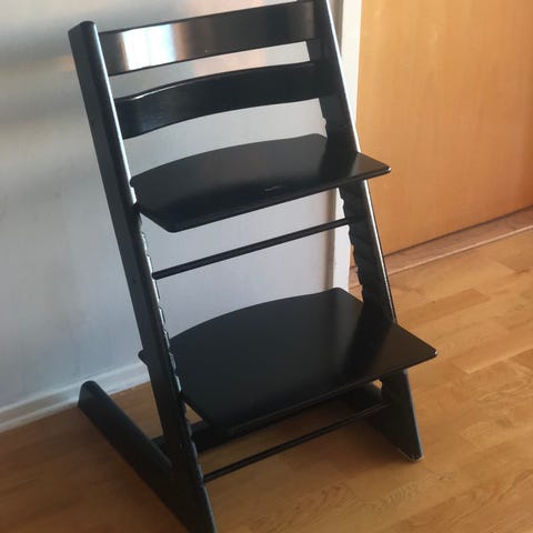 Svart tripp trapp stol säljes pga felköp. Denna äldre version passar ej till babyinsatsen. Fin men i använt skick.