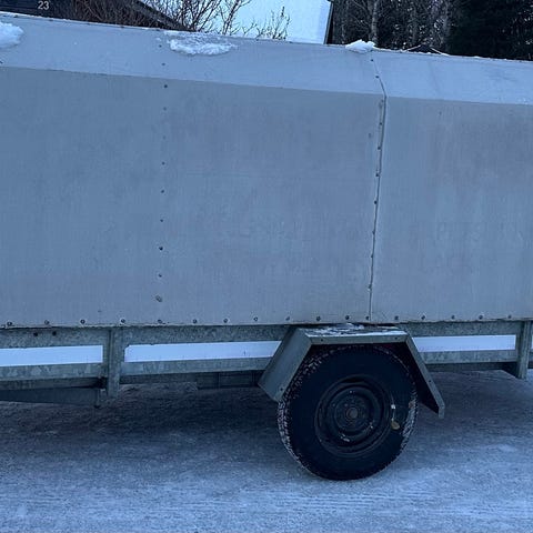 GRÅ, Modellår 1995, other, Äldre och något sliten men fungerande kåpsläpvagn med glasfiberkåpa. Max lastvikt 750 kg. Lastutrymme mått: Bredd 137 cm, Höjd 114 cm, Längd 255 cm.Kåpan är sprucken på några ställen, se anmärkningsbilder.Kompletta sommar + odubbade vinterhjul medföljer. Objektet säljs av Kvdbil (kvd) på auktion med avslut 2025-12-17.