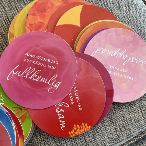 Josefin Dahlberg Soul Work Affirmationskort. Ett set med kort för affirmationer, designade för personlig utveckling och reflektion. Kortens material och storlek är inte specificerade. Produkten levereras i en rosa förpackning.